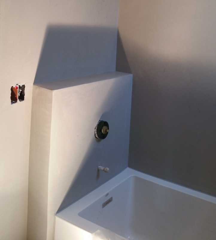 Waterproof plaster in bathroom is a great alternative to tile. We can create, recreate or invent any color, pattern or shape.