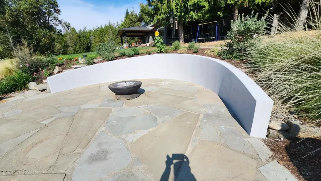 There’s something especially satisfying about bringing a curved wall to life — it softens the landscape, creates movement, and instantly elevates an outdoor space. This recent project focused on stuccoing a radius block retaining wall and finishing it with a smooth, integrally colored coat that blends beautifully with the surrounding hardscape.